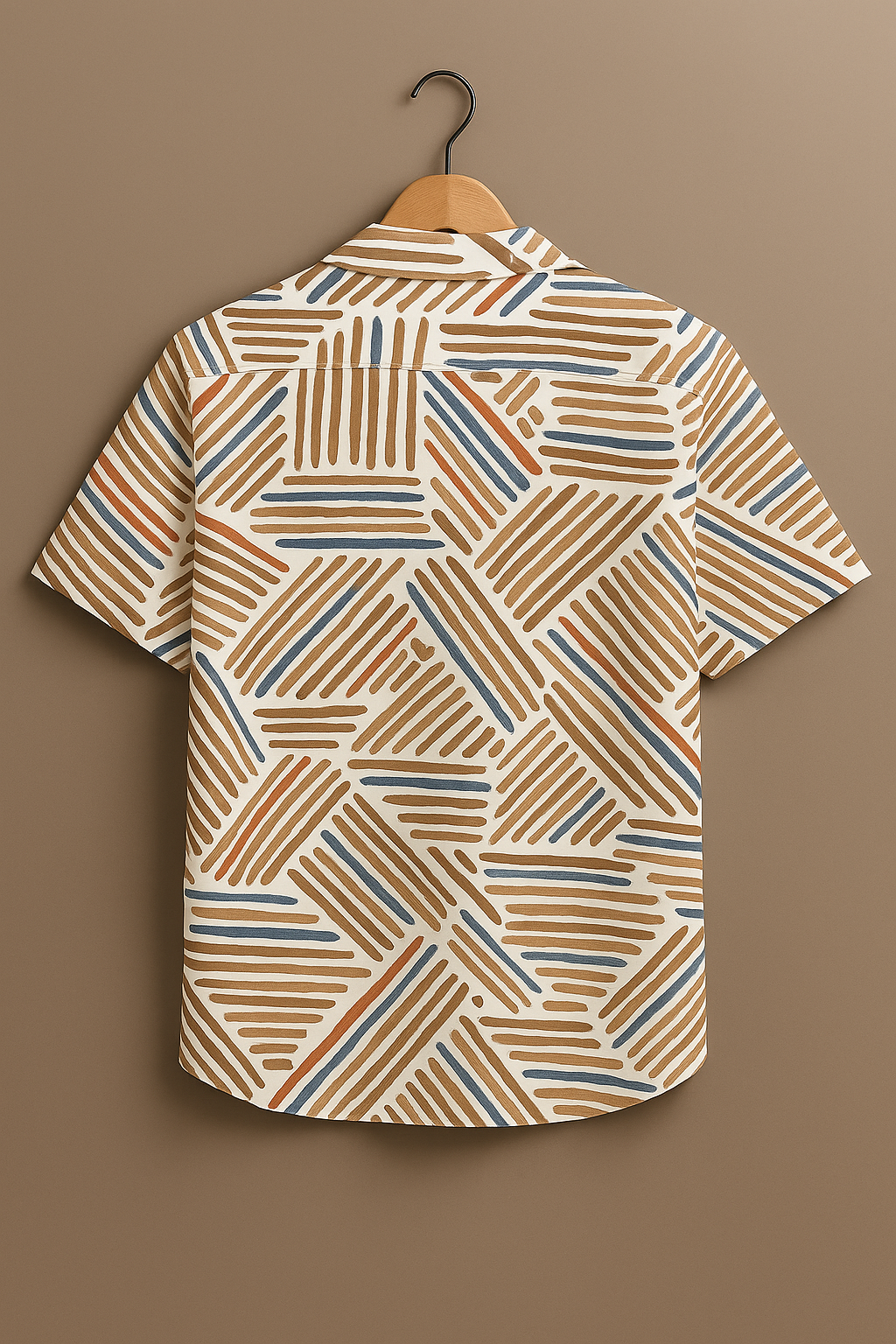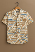 Beige Leaf Print Casual Cotton-Linen Shirt – Half Sleeve, Relaxed Fit