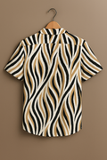 Beige & Black Abstract Stripe Cotton Shirt