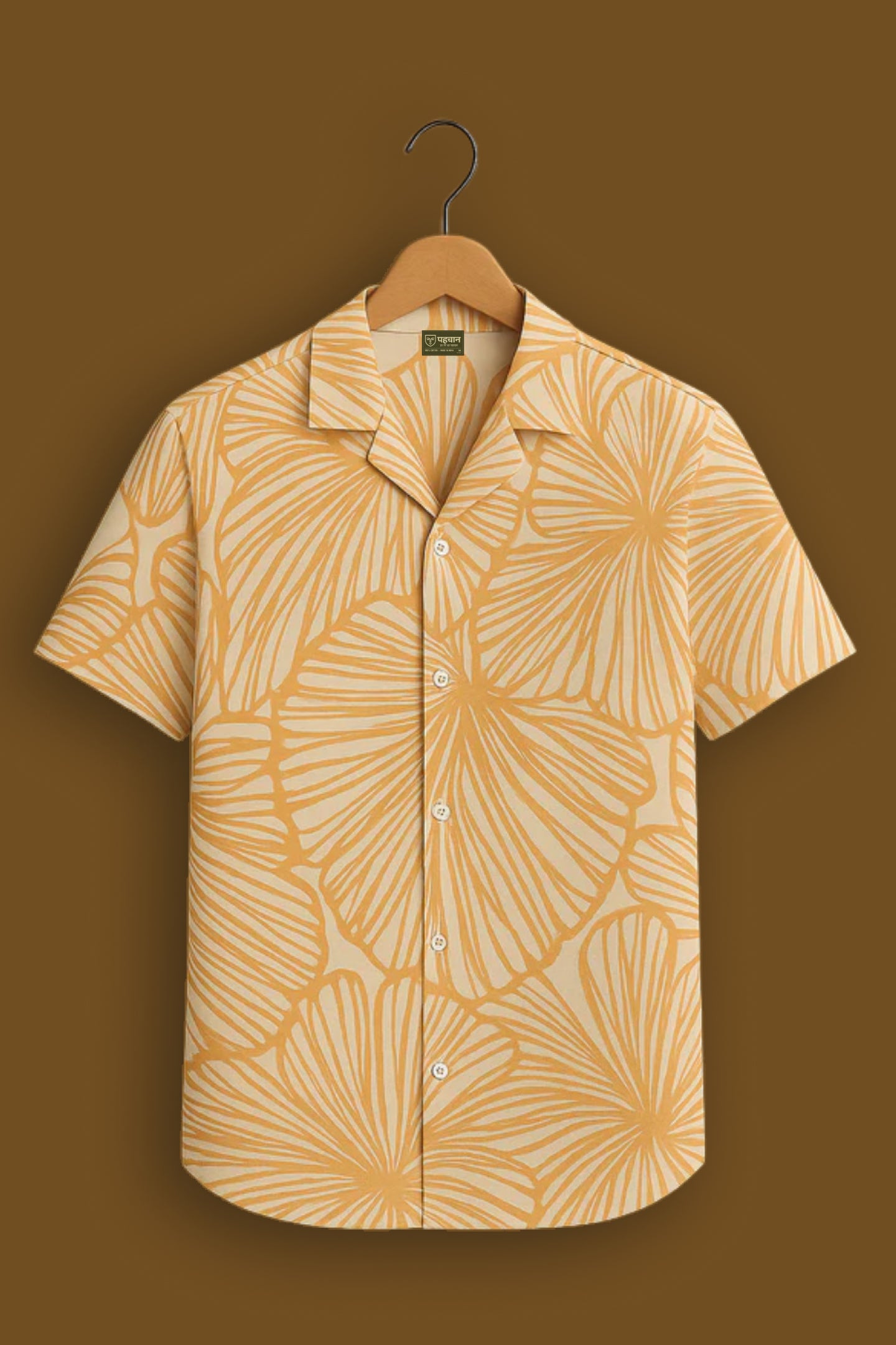 Yellow Floral Line Print Cotton Shirt
