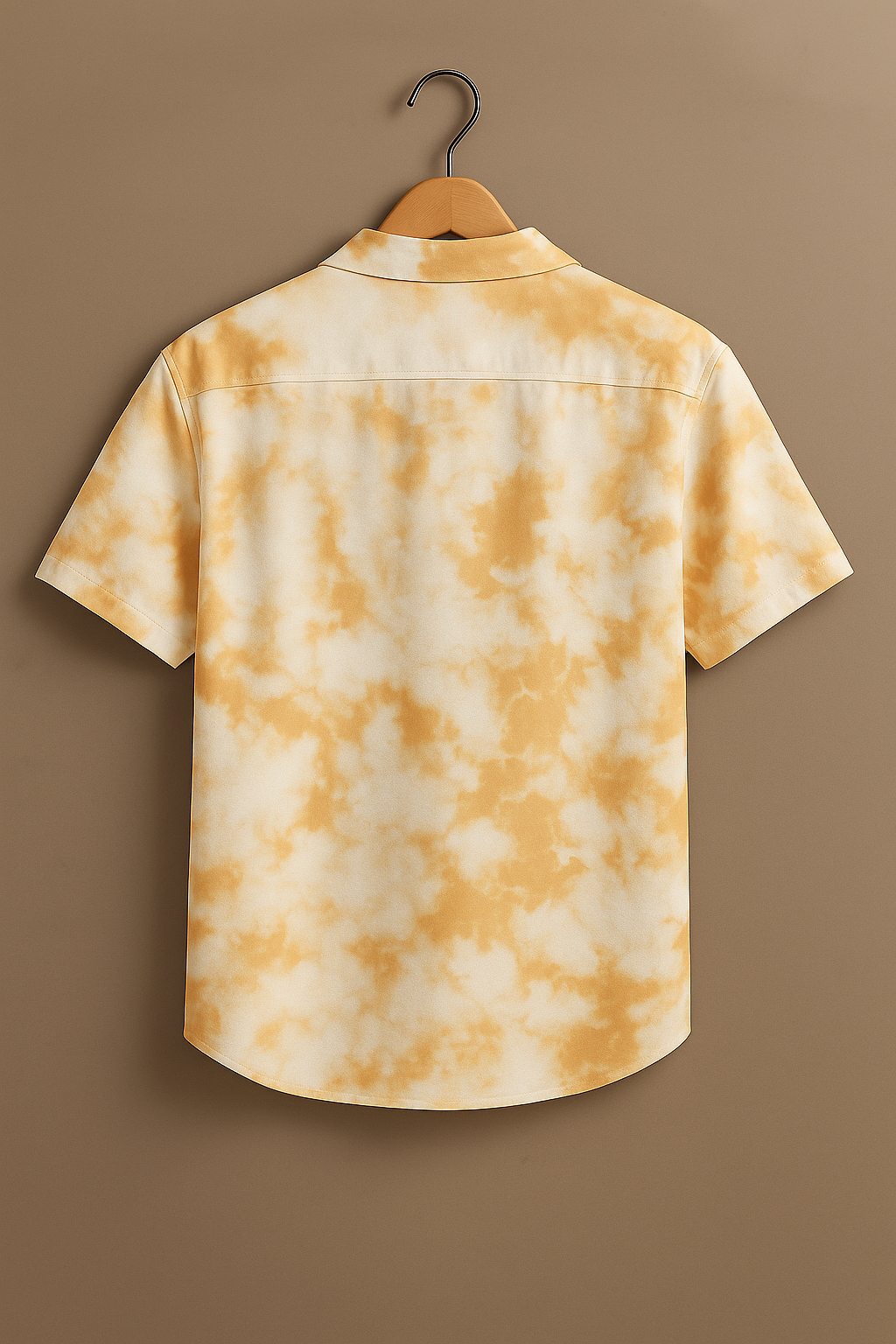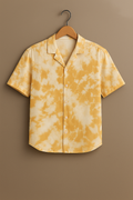Yellow Tie-Dye Cotton Shirt Lightweight Short Sleeve Casual Fit
